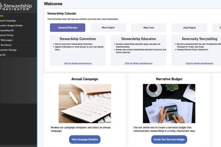 Want to learn more? Visit https://stewardshipnavigator.com/ or go to the Presbyterian Foundation’s website and click RESOURCES to find the Stewardship Navigator.